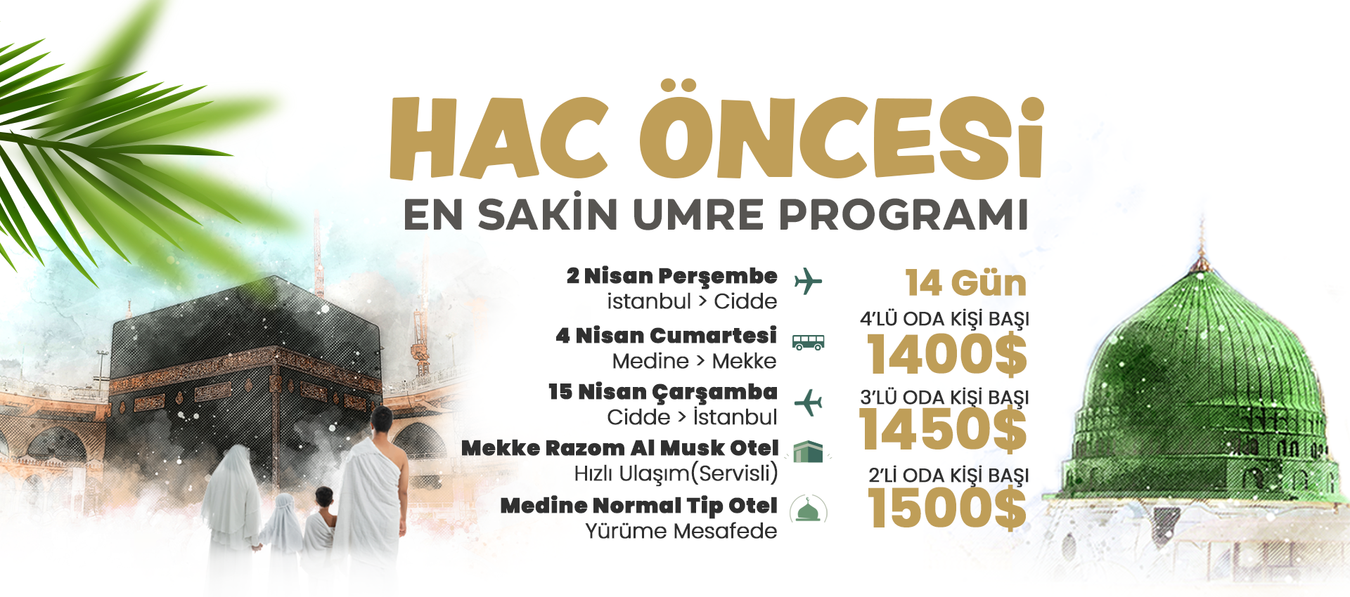 Erken rezervasyon fırsatlarıyla en uygun umre fiyatları avantajını yakalayabilir, huzurlu ve güvenli bir umre yolculuğu gerçekleştirebilirsiniz.