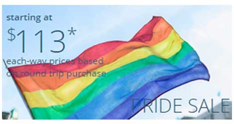 Delta AirPride Sale From $113 each-way prices based on round trip purchase